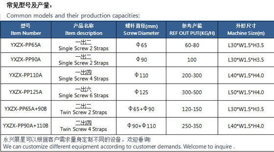 Yongxing Zhanxing PP Packaging Strap Production Line สามารถใช้วัตถุดิบ PP ที่รีไซเคิลและบริเวณบริเวณบริเวณบริเวณบริเวณบริเวณบริเวณบริเวณบริเวณเราเน้นการวิจัย/ปรับปรุงเครื่องผลิตสายพานบรรจุความพยายามอย่างต่อเนื่องของเราทําให้เทคโนโลยีของเราอยู่ในระดับสูงสุดของจีน
